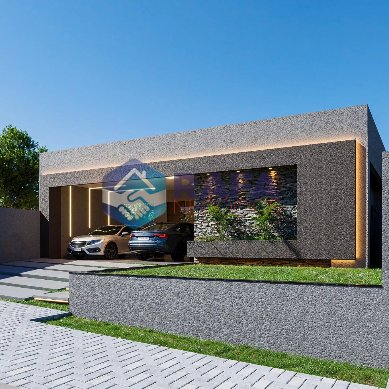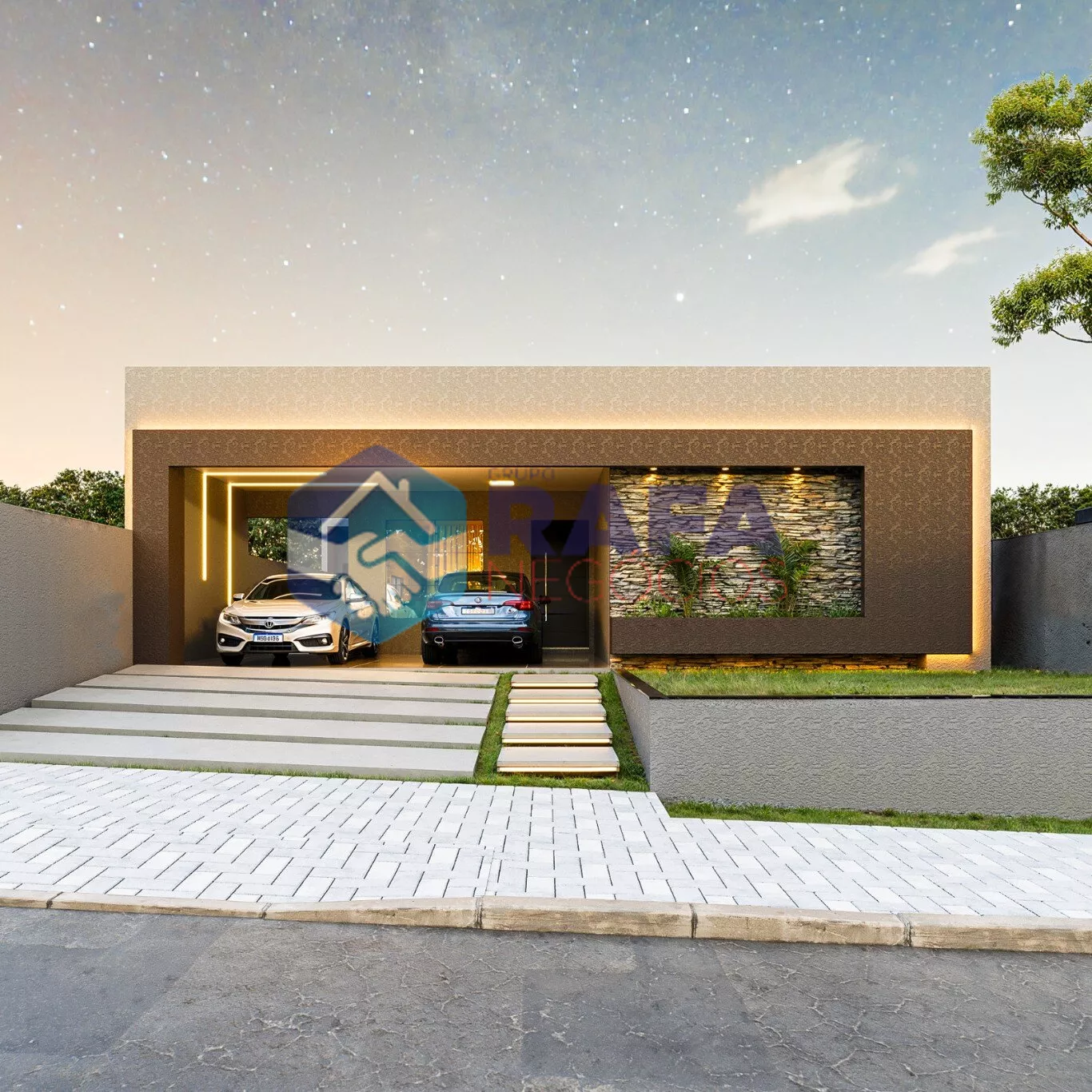 ✅ Garagem para 2 carros lado a lado.